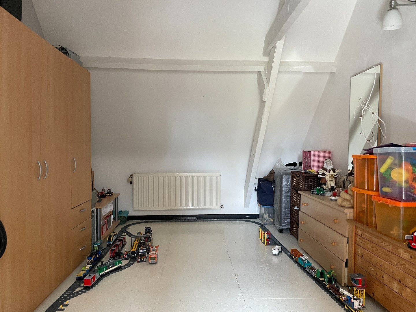 Het appartement bestaat uit een ruime living, keuken, berging, zeer ruim dakterras met berging, 4 slaapkamers, speelruimte en zolder.